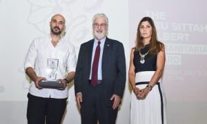 في احتفال تكريمي لشجاعة وتضحيات أخصائيي الرعاية الصحية العاملين في مناطق النزاع، افتتحت الجامعة الأميركية في بيروت جائزة أبو ستة – جيلبرت الإنسانية التي تأسست في عام 2024، تقديرًا للعاملين في مجال الصحة وأوائل المستجيبين الذين يخاطرون بحياتهم وأرزاقهم لحماية الناس ورعايتهم في ظل الحروب والحصارات والاحتلال.