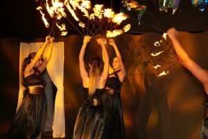 بدأ الحفل بعرض ناري مدهش أضاء الرمال والسماء معاً، ممهدًا الطريق لرحلة بصرية حالمة تروي قصة المرأة كما تراها ريم : حرة، حالمة، جريئة، ولا محدودة كسماء لا تُطال.